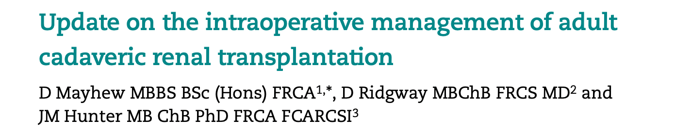 Renal transplantation is no different, and is one of the most widely recognised whole-organ transplant procedures that is responsible for many happy faces around the world each year.