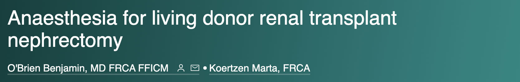 In the exceedingly unlikely event that they ask you about anaesthetising the donor for a living donor transplant, here are the key points: