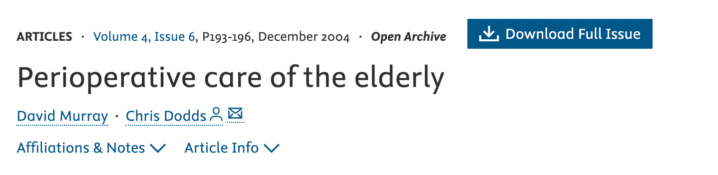 - Any operation carries higher mortality in the elderly - 75% of perioperative deaths occur in those over seventy (NCEPOD report)*