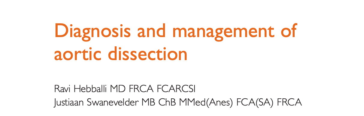 Of all the bad things that can happen to our lovely patients, one of the really bad ones is when the main blood pipe stops piping and starts splitting itself apart.