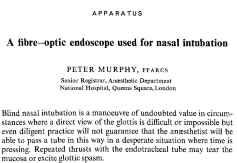 First performed by Dr Peter Murphy in 1967, who hopefully cleaned his surgical choledochoscope before shoving it down someone's windpipe, this technique has reigned supreme when it comes to difficult intubation - and for good reason - it works.