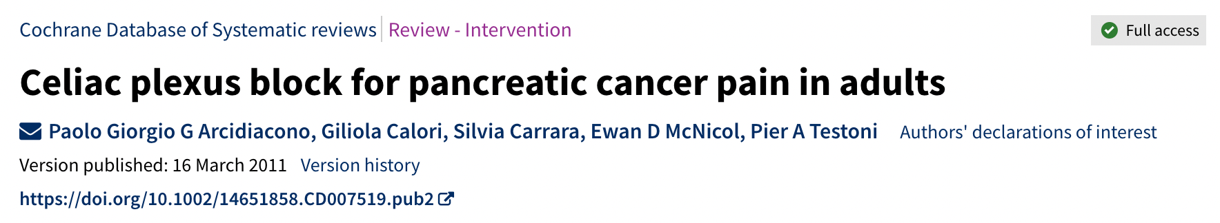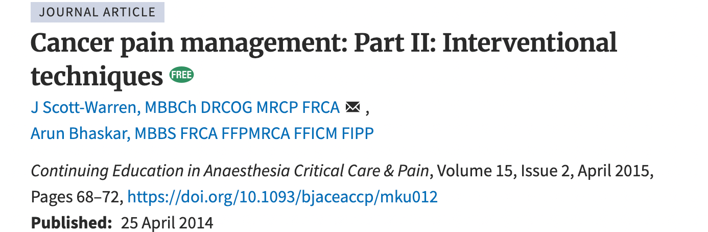 - Used for severe unilateral cancer pain below C4, such as Pancoast tumours and mesothelioma