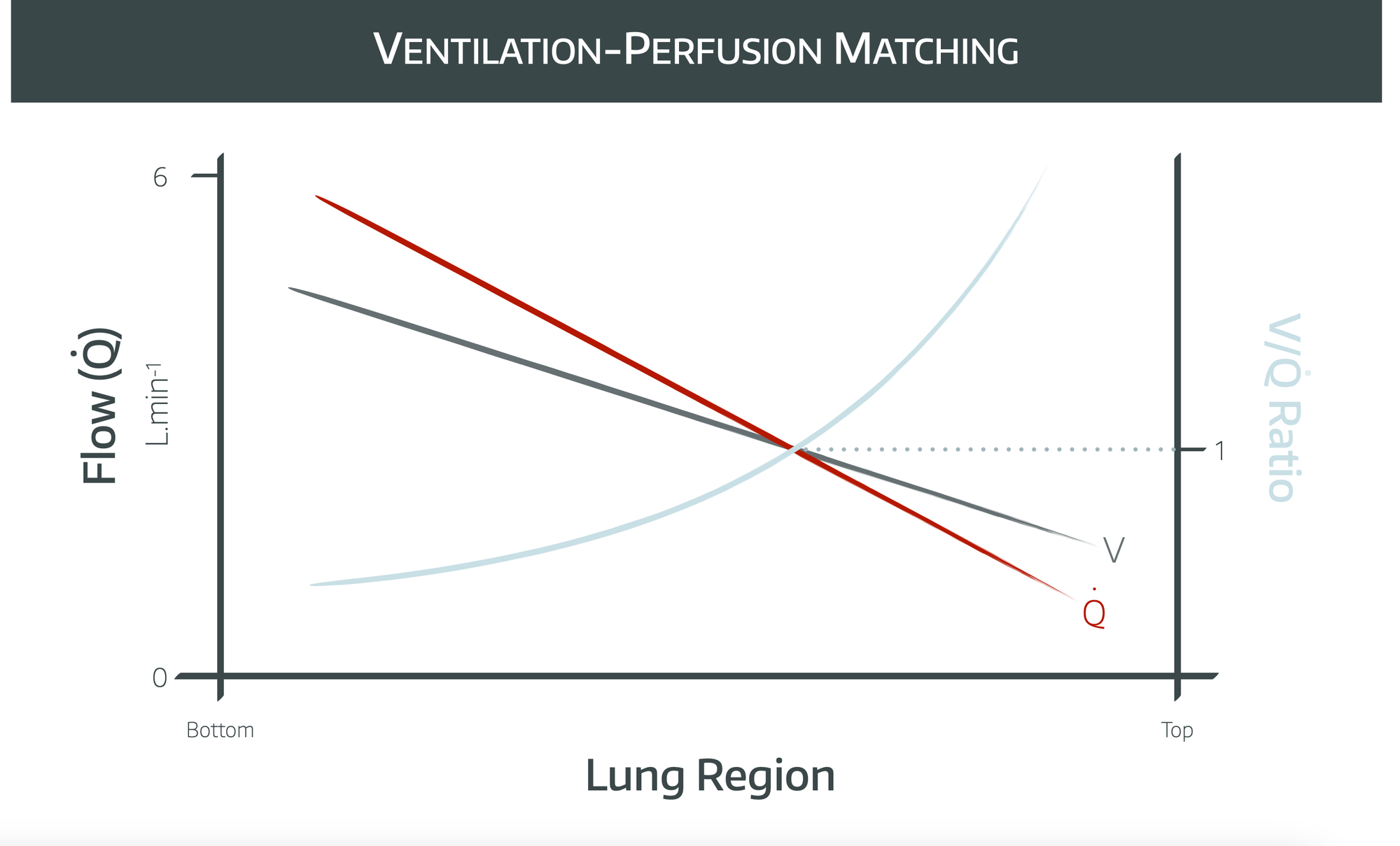 - This means that VQ ratio is lower at the bottom and increases towards the top of the lungs