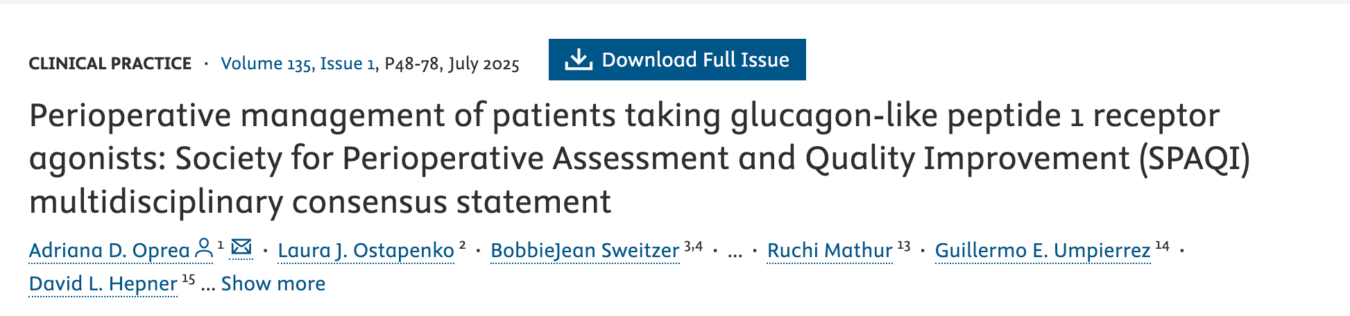 - Continue GLP-1 agonists perioperatively in patients without significant nausea or vomiting
