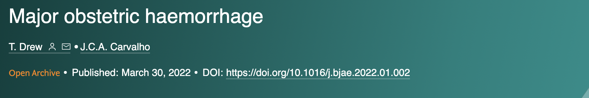 - Major obstetric haemorrhage is the leading cause of global maternal morbidity and mortality