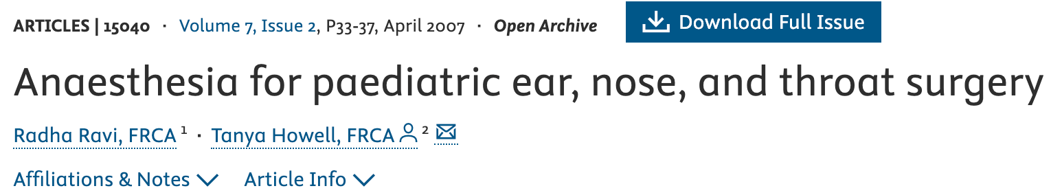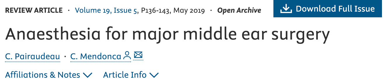 At some point you're going to find yourself anaesthetising a patient, be that adult or paediatric, for middle ear surgery. You may also find yourself sat in front of an examiner asking you how you'd go about it.