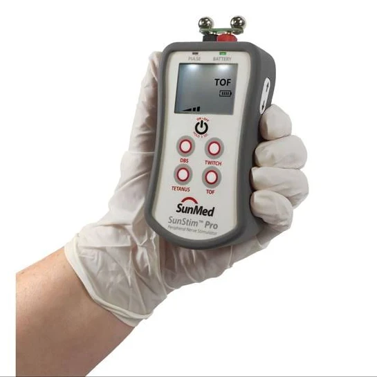 To assess the degree of neuromuscular blockade more scientifically, we use a nerve stimulator, which fires a small electrical impulse through the skin to cause depolarisation of the motor neurone and therefore elicit a muscle twitch.