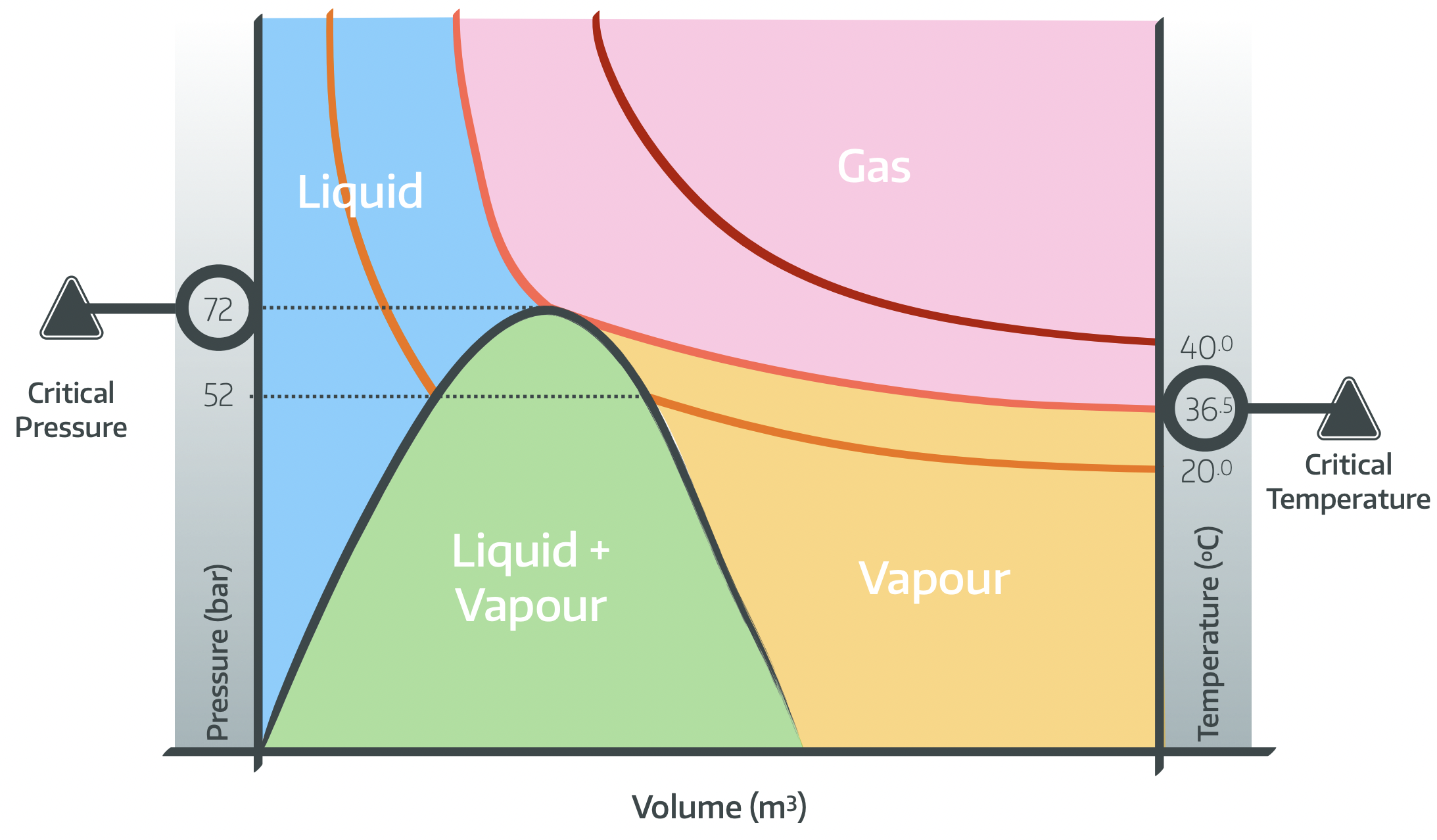 This means that above 36.5°C it cannot be compressed back into a liquid, no matter how much pressure is applied, and it is therefore a gas