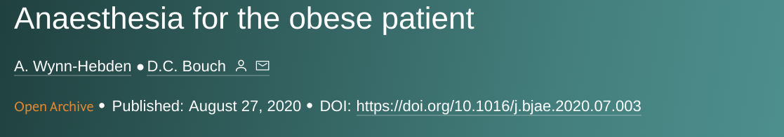 Reference : SOBA UK #anaesthesia #anesthesia #obesity#physiology#pharmacology pic.twitter.com/yQyirRpifZ