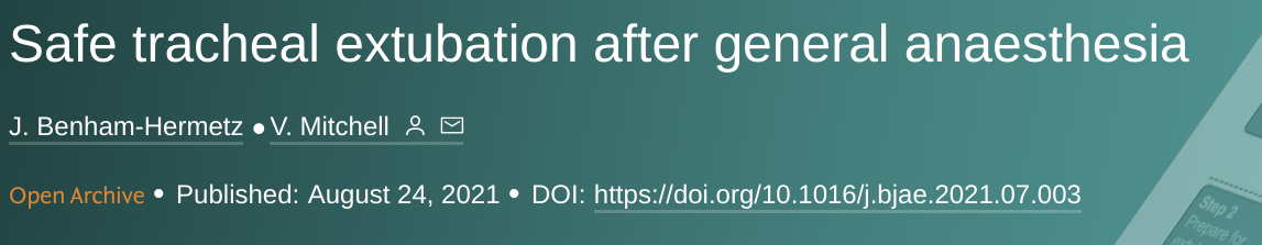 But the other end of the procedure tends to be less choreographed, and certainly less feared by junior anaesthetists, largely because there's usually a sense of enormous relief at having successfully intubated and made it thus far through the operation, meaning the act of extubating the patient can often be dismissed as the 'small remaining step' - which can end up causing issues.